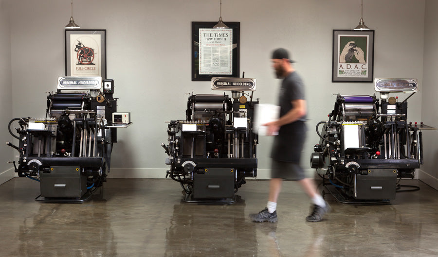The company has grown and expanded over the years, and we now are a staff of seven, have a retail and printing space in downtown Chico where we still do just what we started at the beginning: design cards, print them on old presses, one ink at a time, and package them with care for you to give and receive.